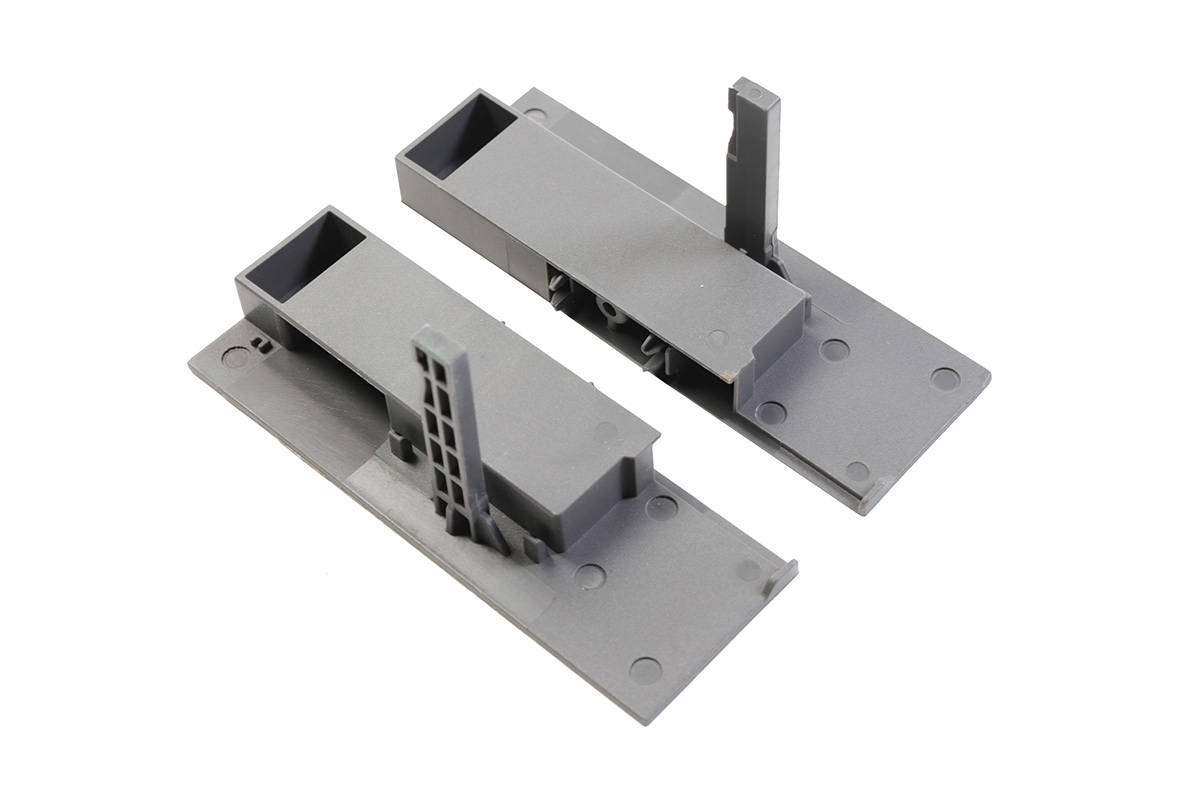Złączka średnia frontu wewnętrznego Modern Box Square wykonana z tworzywa dostępna w dwóch wariantach kolorystycznych. Produkt został przeznaczony do średnich szuflad Modern Box Square. Umożliwia montaż frontu do szuflady wewnętrznej wraz z relingami.