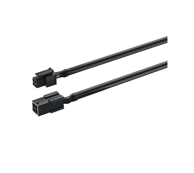 Nadaje się do przedłużania wszystkich przewodów zasilających do przełączników Häfele Loox (wbudowane przewody zasilające, modułowe przewody zasilające z łącznikiem zatrzaskowym i bez, przewody zasilające skrzynki wieloprzełącznikowej).