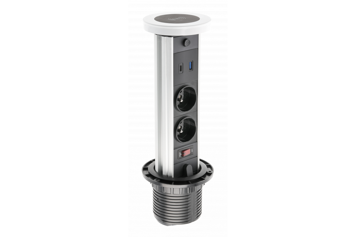 Wpuszczane w biurko gniazdo Camino to przykład ergonomii i minimalizmu. Gniazdo nie zajmuje dużo miejsca, jest więc idealne do małych stołów i młodzieżowych biurek. Funkcja lampki nocnej spodoba się szczególnie „nocnym markom”. Takie rozwiązanie sprawdzi się też w kuchni podczas przygotowywania posiłków. Camino jest wygodny w użytkowaniu – wystarczy go pociągnąć do góry, aż momentu, gdy dolna część się zablokuje. Standardem staja się już ładowarki indukcyjne. Nie zabrakło jej też i w tym przypadku.