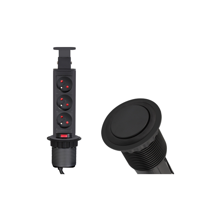 LIFT BOX czarny fi60mm 3x gniazdo schuko