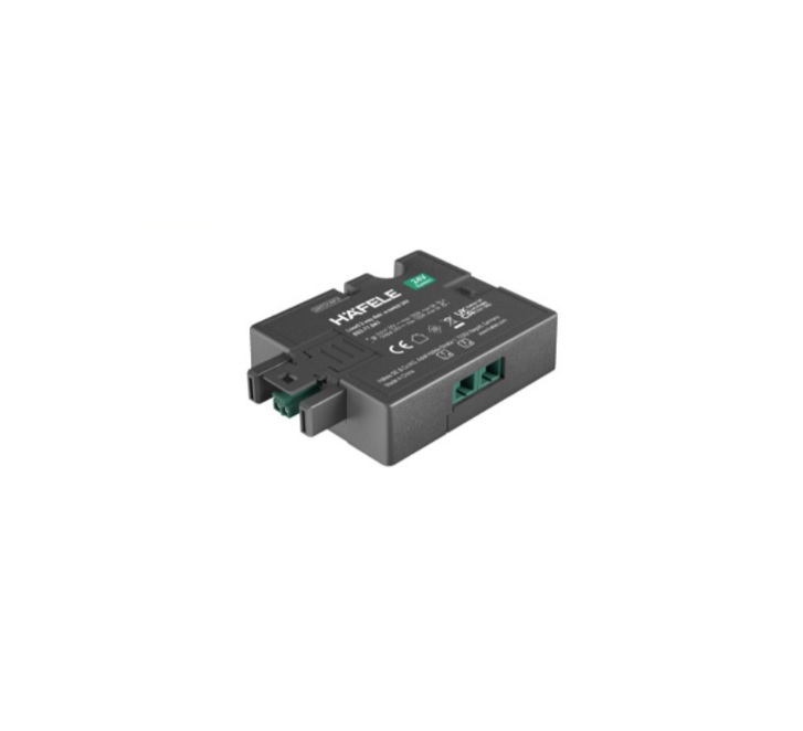 Dystrybutor 833.77.843 HAFELE LOOX5 z funkcją przełączania do dwóch wejść. Został wyposażony w połączenie wtykowe typu BOX-TO-BOX. Napięcie dystrybutora wynosi 24V. Maksymalna moc podłączonych urządzeń wynosi 120W - nie zaleca się przekraczania maksymalnej mocy wyjściowej zasilacza!