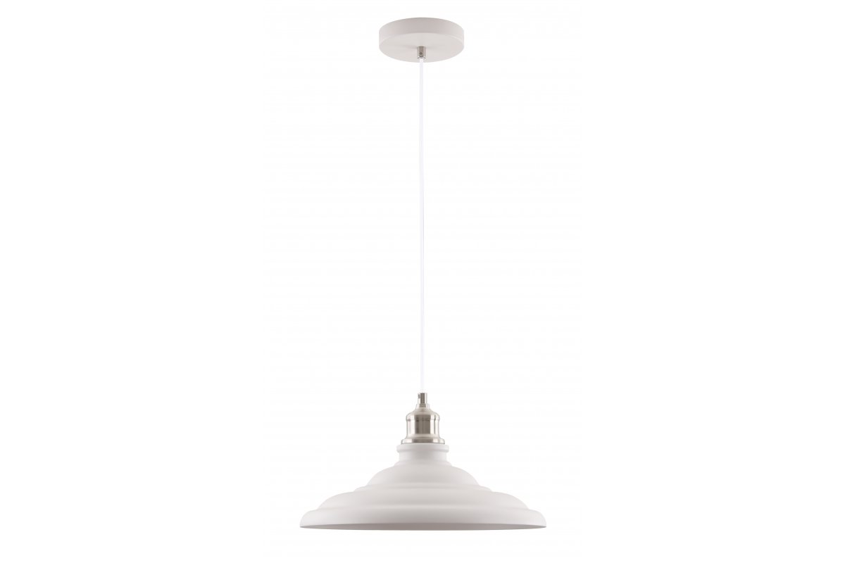 Lampa LORET to bardzo udane połączenie nowoczesnego spojrzenia na świat z industrialnym wzornictwem z końca XX wieku. Duży biały klosz o średnicy niemal 35 cm, sprawdzi się jako oświetlenie stołu w jadalni lub wyspy kuchennej.