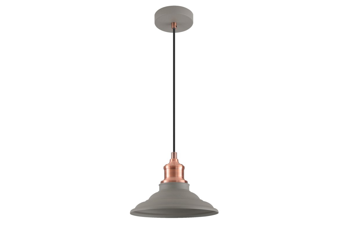 Lampa LORET to bardzo udane połączenie nowoczesnego spojrzenia na świat z industrialnym wzornictwem z końca XX wieku. Szary klosz o średnicy niemal 21 cm z miedzianym mocowaniem, sprawdzi się jako oświetlenie w korytarzach, kuchniach i salonach. Można go także użyć do wydzielania stref w domu.