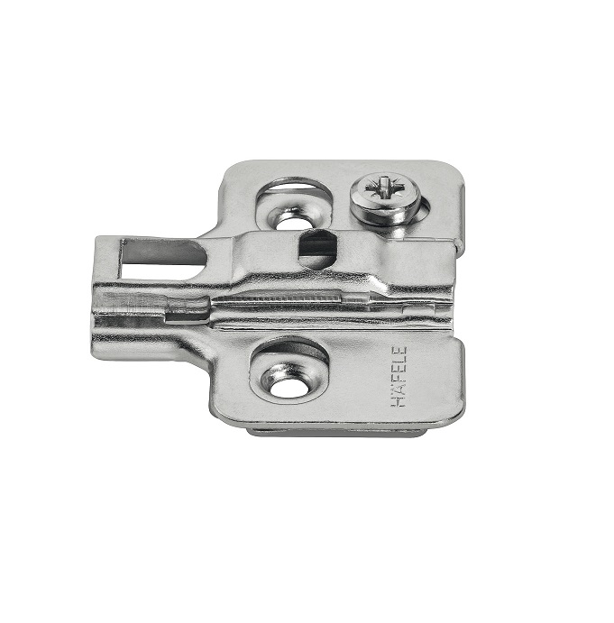 Prowadnik krzyżakowy Häfele Metalla 310 SM z techniką szybkiego montażu, regulacja wysokości ±2 mm na mimośrodzie do przykręcania wkrętami do płyt wiórowych.