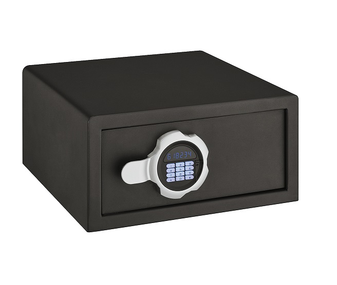 Sejf przeznaczony do użytku hotelowego ze stali o grubości 2mm, wymiarach zewnętrznych 195x400x410 (HxWxD), zasilany bateryjnie z możliwością awaryjnego otwarcia mechanicznie (ukryty zamek) lub przez kod master. Posiada podświetlenie LED wewnątrz, wyświetlacz na panelu zewnętrznym, zegar czasu rzeczywistego z pamięcią 100 ostatnich zdarzeń, jest w stanie pomieścić laptopa 15” o co często pytają goście w hotelach. Po każdym zamknięciu drzwi sejfu gość nadaje nowy kod od 4 do 6 cyfr, dzięki czemu może być pewny, że pozostawiona w nim zawartość jest bezpieczna.
