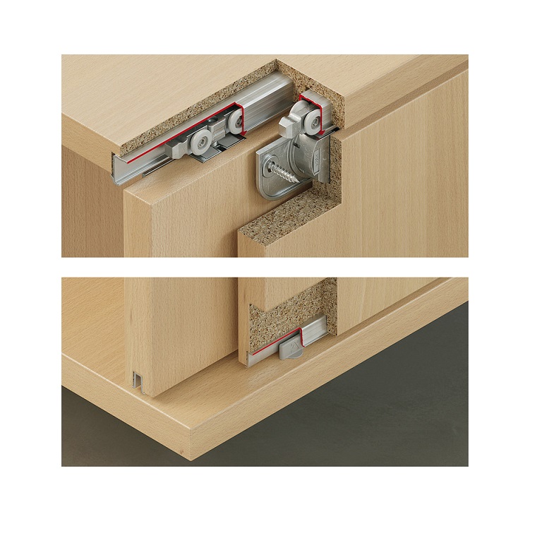 montaż obudowa wózka do przykręcania, wózki jezdne beznarzędziowo (system szybkiego montażu), prowadzenie dolne wciskane w otwór