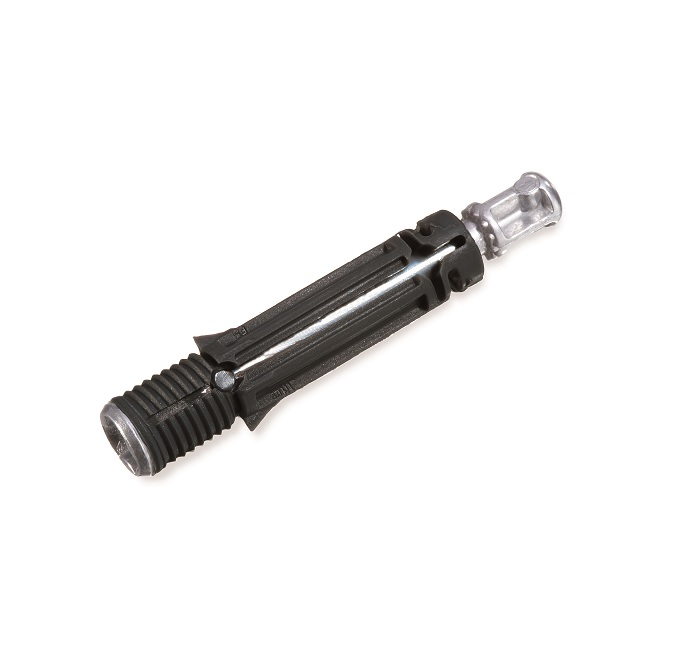 Gdy mimośród się zaciska, trzpień operuje w trzech kierunkach: podciąga łeb trzpienia do góry, popycha plastikowy korpus w dół i powoduje rozszerzanie się plastikowego gwintu.